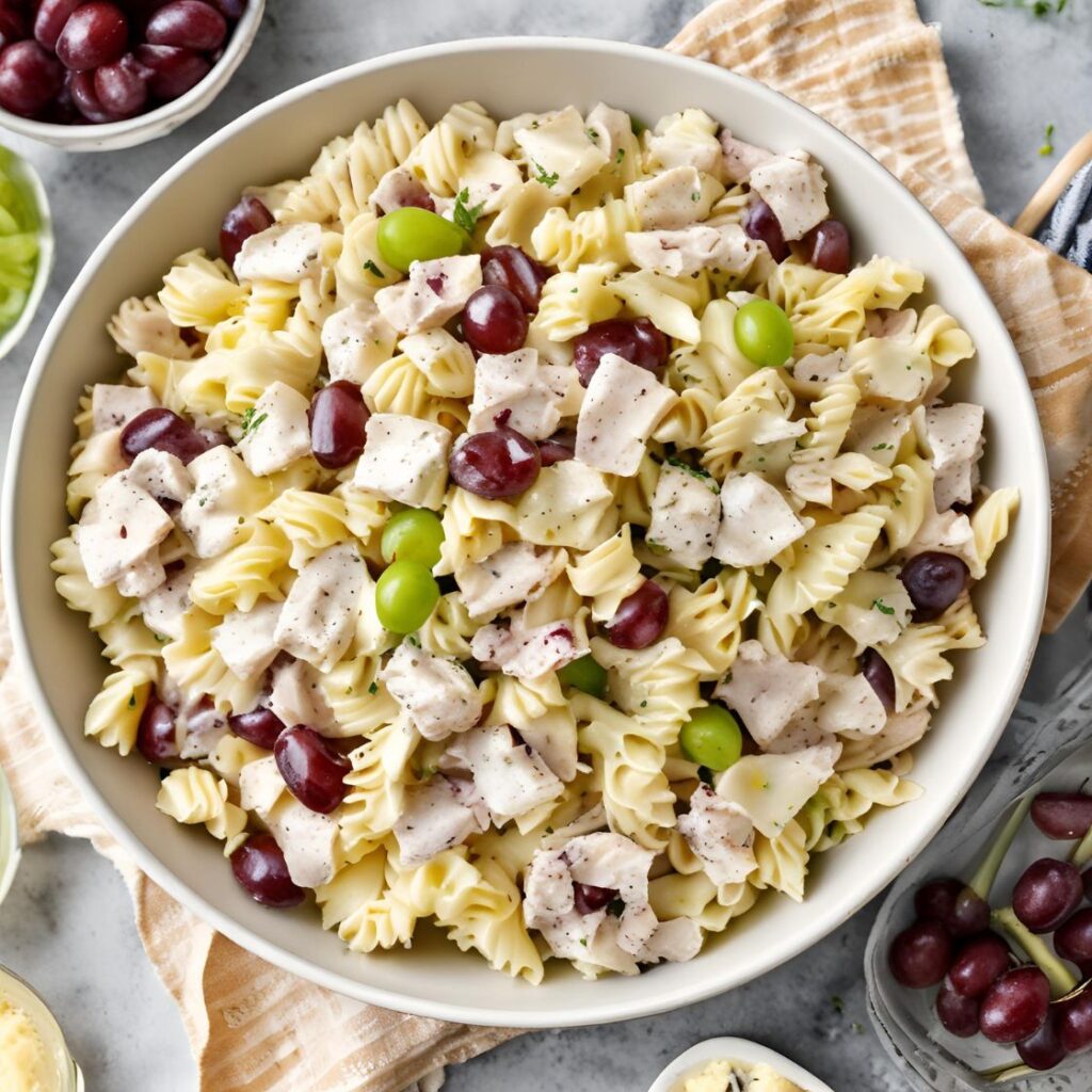 A refreshing pasta salad combining tender chicken, sweet grapes, and crunchy pecans in a creamy honey-tarragon dressing that's perfect for any occasion.
