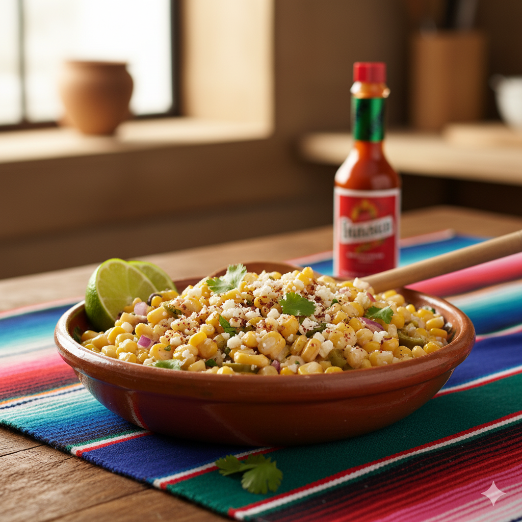 Sweet corn kernels are sautéed until lightly charred, then mixed into a tangy dressing made with mayonnaise, cotija cheese, chili powder, and lime. It’s a comforting, flavorful, and incredibly easy-to-eat appetizer, perfect for scooping with chips or serving in small bowls.