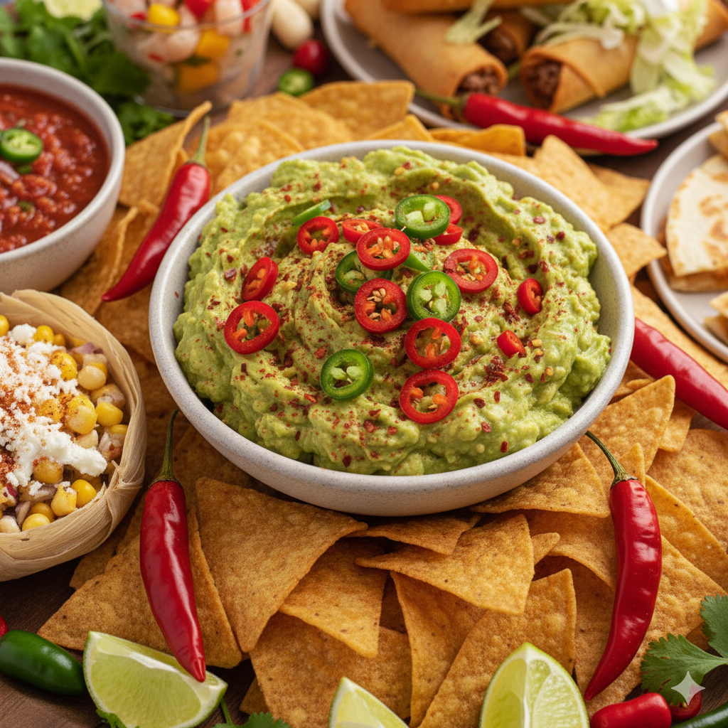 Guacamole, that glorious green goddess, is truly the crown jewel of Mexican appetizers. It’s a creamy, dreamy dip that’s vibrant with fresh flavors – ripe avocado, tangy lime, bright cilantro, and just enough chili to give it a lively kick.